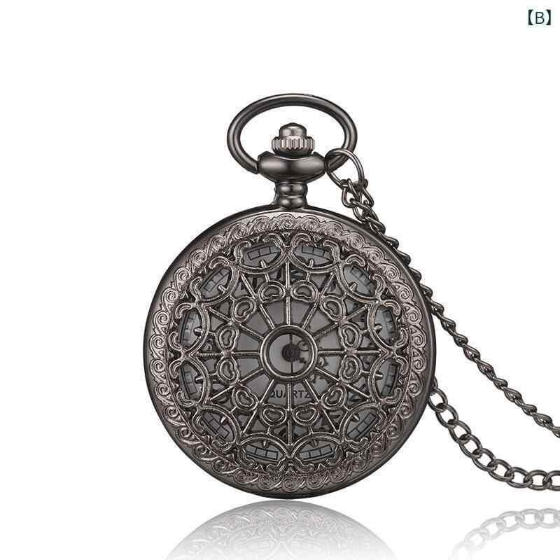 懐中時計 男女兼用 メンズ レディース レトロ アンティーク クォーツ ポケットウォッチ ビッグサイズ メッシュ ゴールド 金色文字盤 12種類の透かし彫り模様 合金製 丸型 ギフト 記念ウォッチ