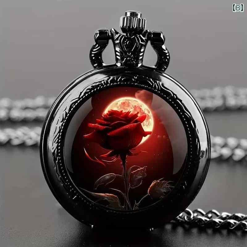 懐中時計 ユニセックス 男女兼用 フリップカバー クォーツ式 カラーイラスト モチーフデザイン 数字表示 ミディアムサイズ レトロ アンティーク調 おしゃれ ペンダント 合金製 ラウンド型 普段使い ファッション小物