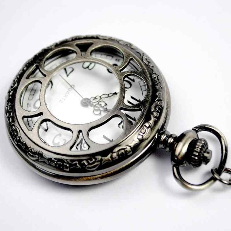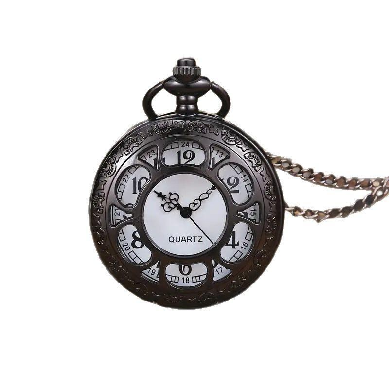 懐中時計 ユニセックス 透かし彫り 花びら 合金製 クォーツ式 ポケットウォッチ 大型 蓋付き 丸型 複数デザイン 黒 ブラック ハート柄 アンティーク調