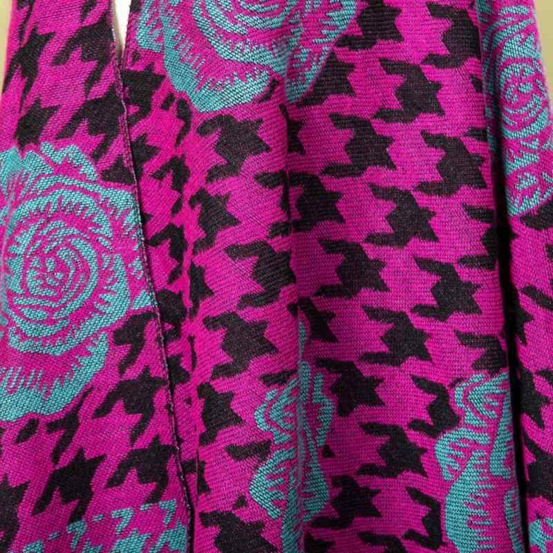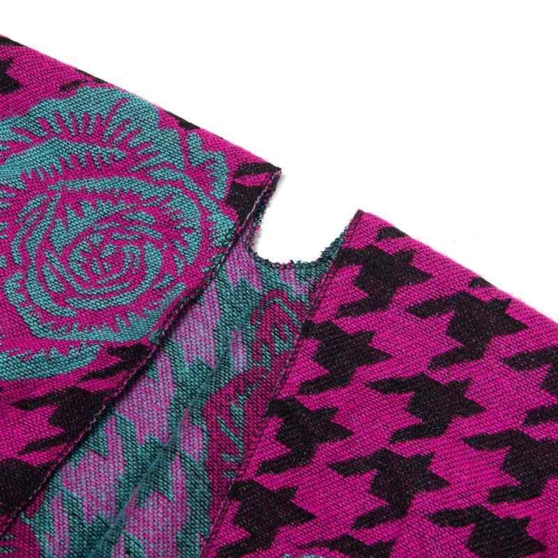 ポンチョ レディース バラ柄 千鳥格子柄 フリンジ レトロ エレガント クラシック ショール ケープ 体型カバー あったか 羽織り ポリエステル アクリル エスニック パープル オレンジ レッド系