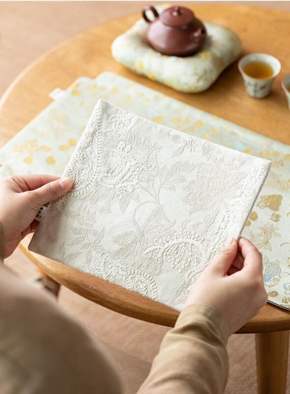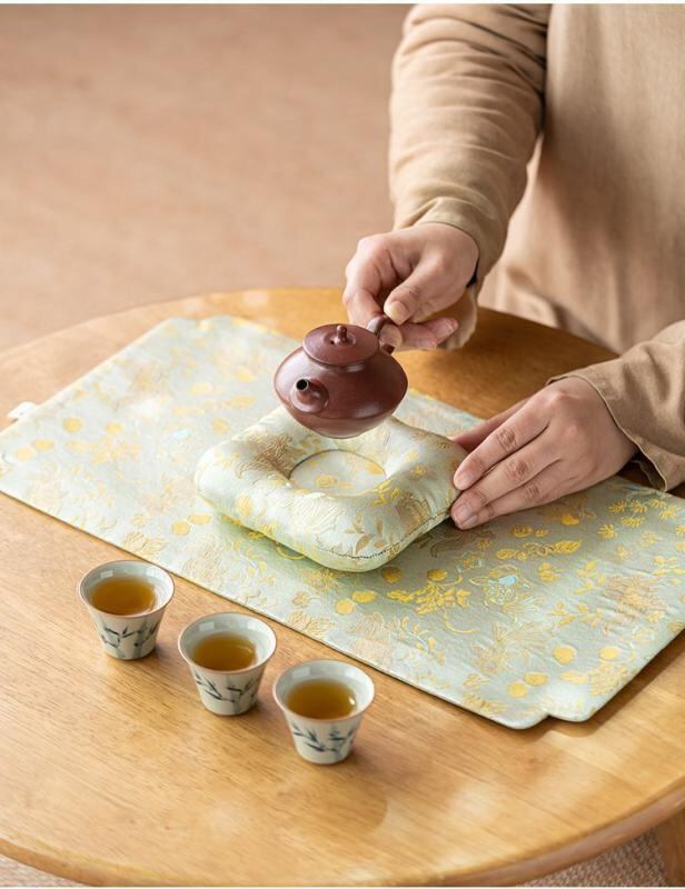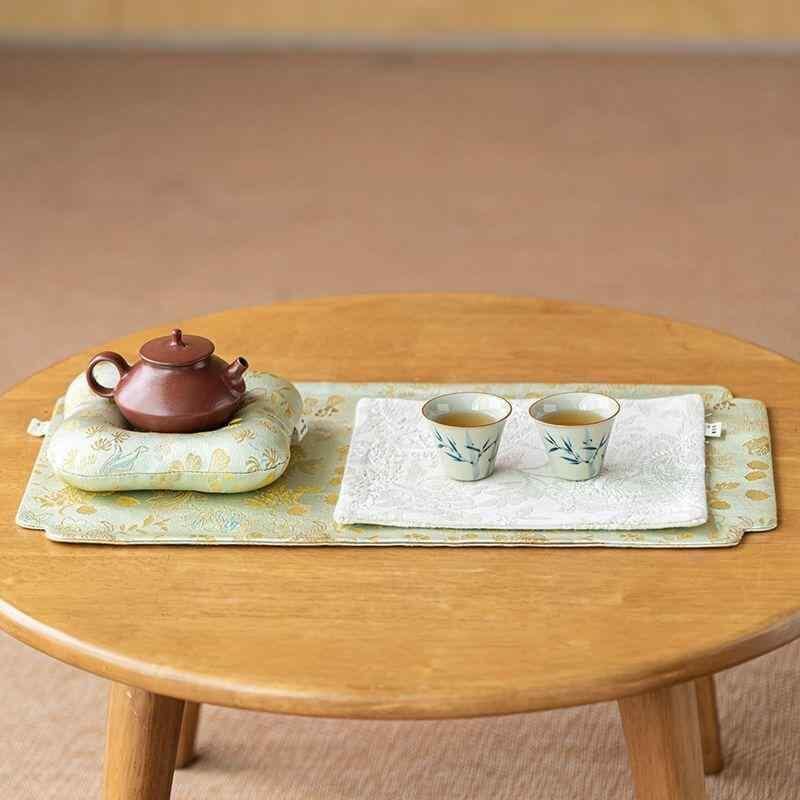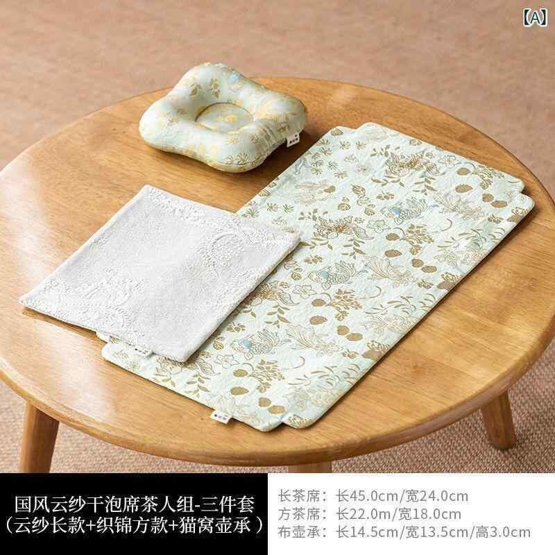 茶席 雲紗柄 布製 新中国風 茶道 功夫茶器 ティーマット 敷物 急須敷き 茶碗敷き テーブルマット 乾泡台 小物 三点セット