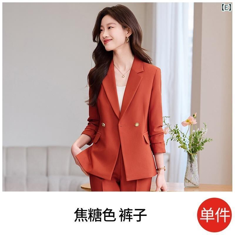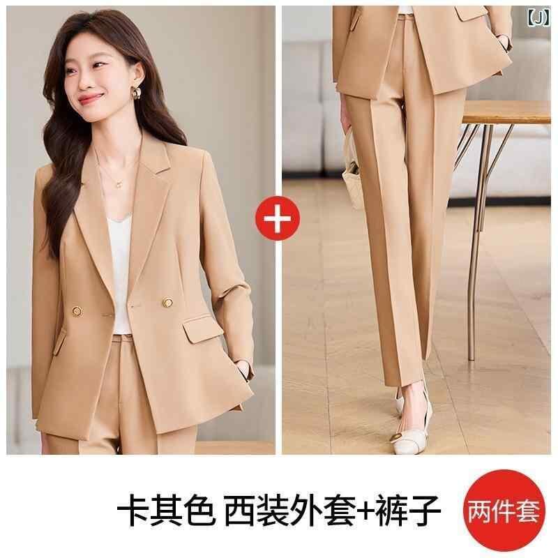 セットアップ レディース キャメル 長袖 テーラードカラー ジャケット パンツ 上下セット 高級感 オフィス ビジネス 通勤 エレガント きれいめ 上品 春秋冬