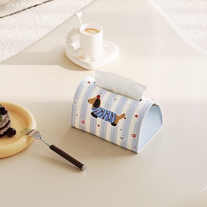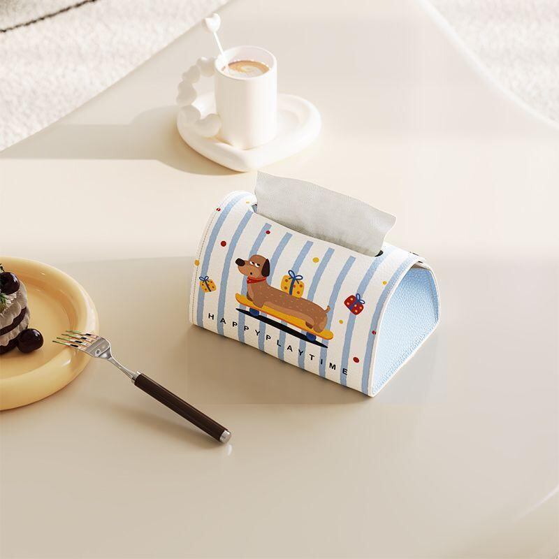ティッシュケース キャラクターデザイン かわいい 動物柄 レザー 革製 防水 多機能 高級感 卓上 壁掛け対応 家庭用 リビング デスク 車載 インテリア ティッシュボックス