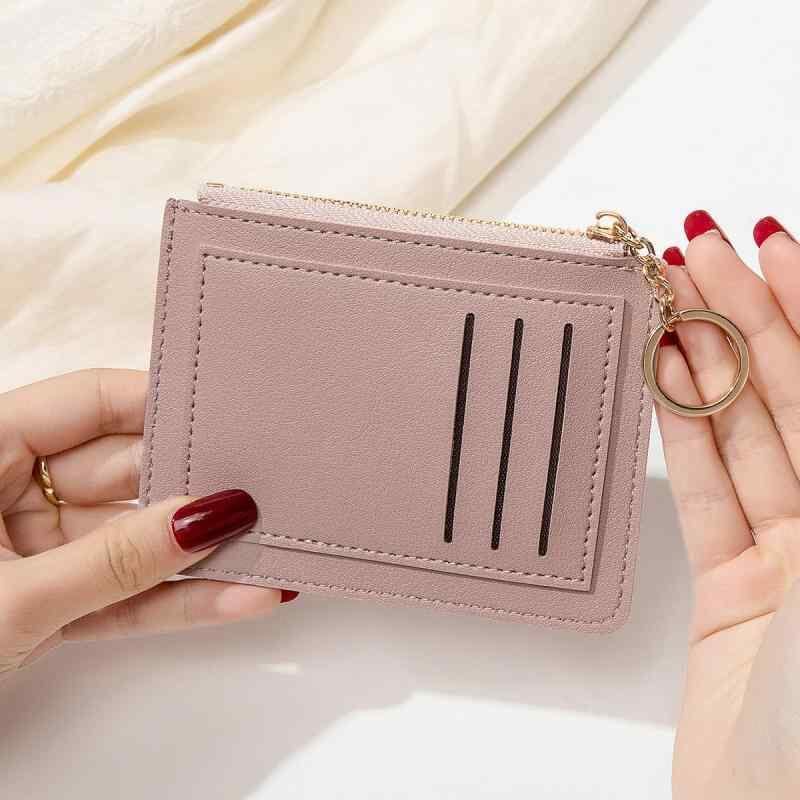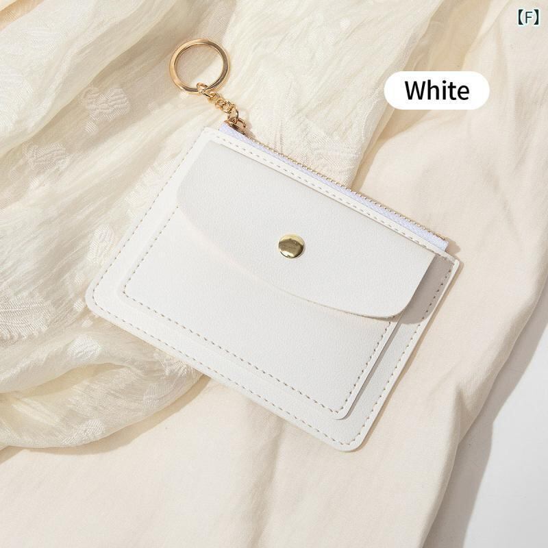 コインケース レディース 女性用 薄型 ミニ財布 カードケース ファスナー 小銭入れ キーホルダー付き シンプル カジュアル PUレザー 軽量 普段使い