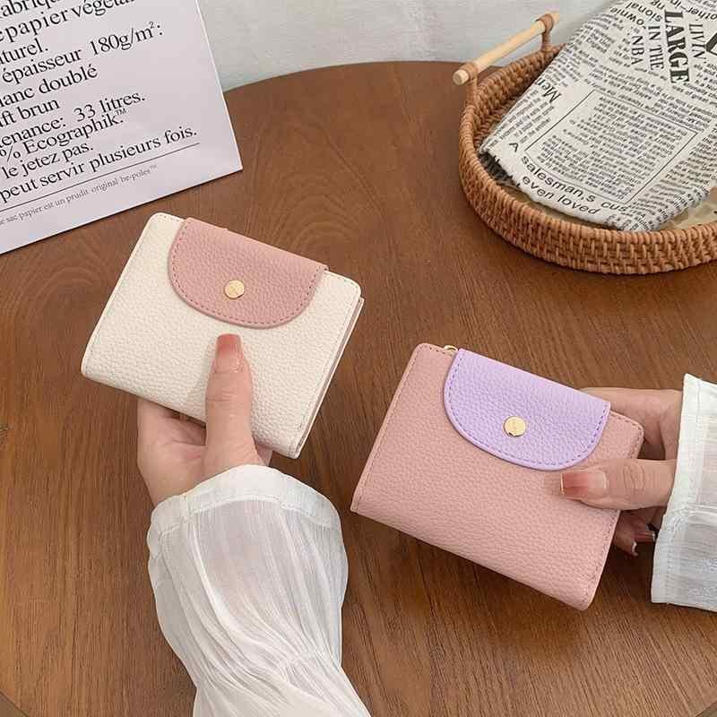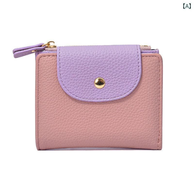 ・素材: PU・折り数: 2つ折り・スタイル: アーバンシンプル・特徴: ステッチ、バイカラー・柄: 無地・裏地素材: ポリエステル・カラー展開: ピンク、パープル、オフホワイト、グリーン、レッド、ブラック・適用シーン: 日常使い・機能: スキミング防止