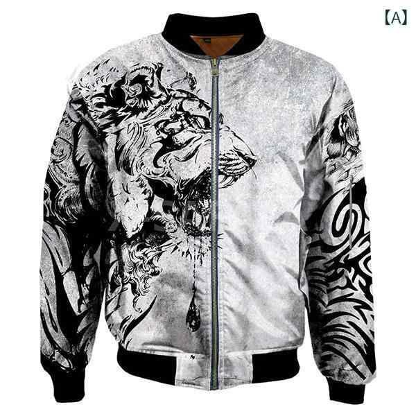 ジャケット メンズ ジップアップ ブルゾン プリント柄 スポーツ カジュアル アウター ビッグシルエット ポリエステル ゆったり 長袖 秋 秋冬 ファッション ストリート タウンユース