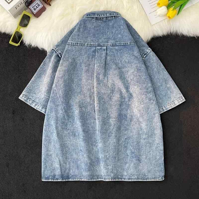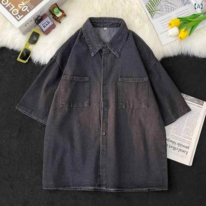 ["・カテゴリ: ジャケット","・スタイル: カジュアル","・ネックライン: 襟付き","・フィット: ルーズフィット","・開閉: シングルボタン","・厚さ: 薄手","・対象: 青少年","・生地: デニム","・主な素材: 綿60%","・裏地素材: スパンデックス40%","・シーン: 日常","・裾デザイン: ストレート","・加工: ノーアイロン加工","・着丈: レギュラー","・ポケット: パッチポケット","・着用スタイル: アウター","・袖丈: 5分袖","・カラー展開: ブラック、ブルー","・サイズ展開: M, L, XL, 2XL","・袖タイプ: シャツスリーブ","・対象年齢: 成人","・性別: 男性"]
