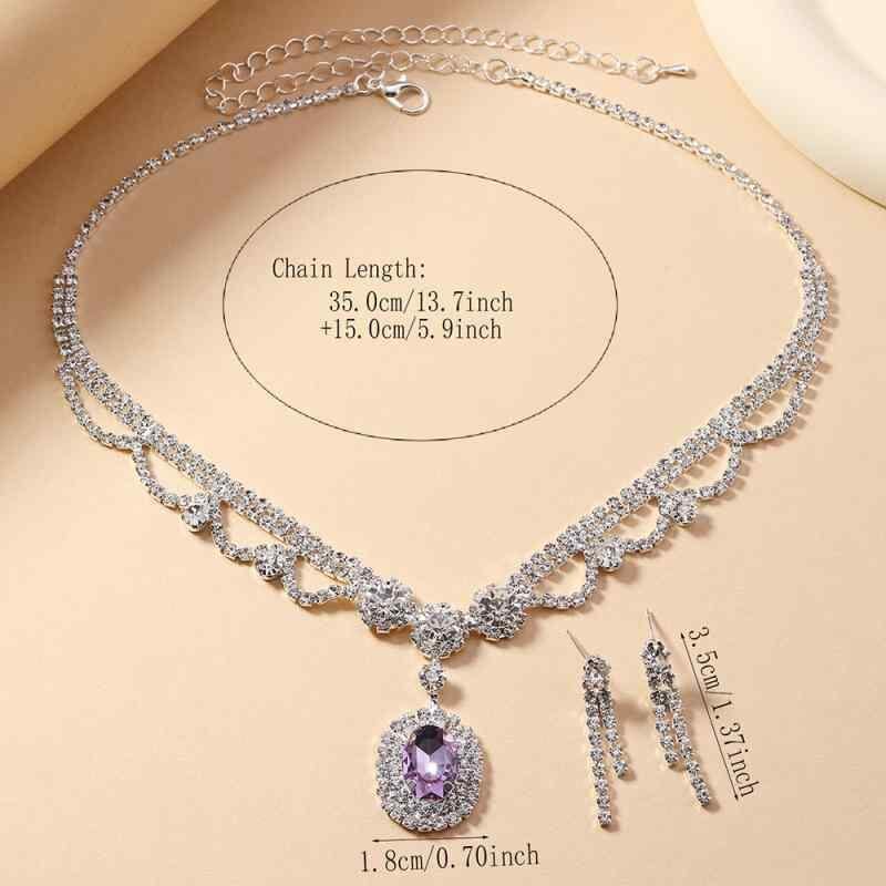 ネックレス ピアス セット レディース ライトラグジュアリー 上品 エレガント アメジスト 雫型 ドロップ ペンダント ジルコニア 電気メッキ加工 パープル 2点セット フォーマル パーティー 普段使い 誕生日 記念日 プレゼント