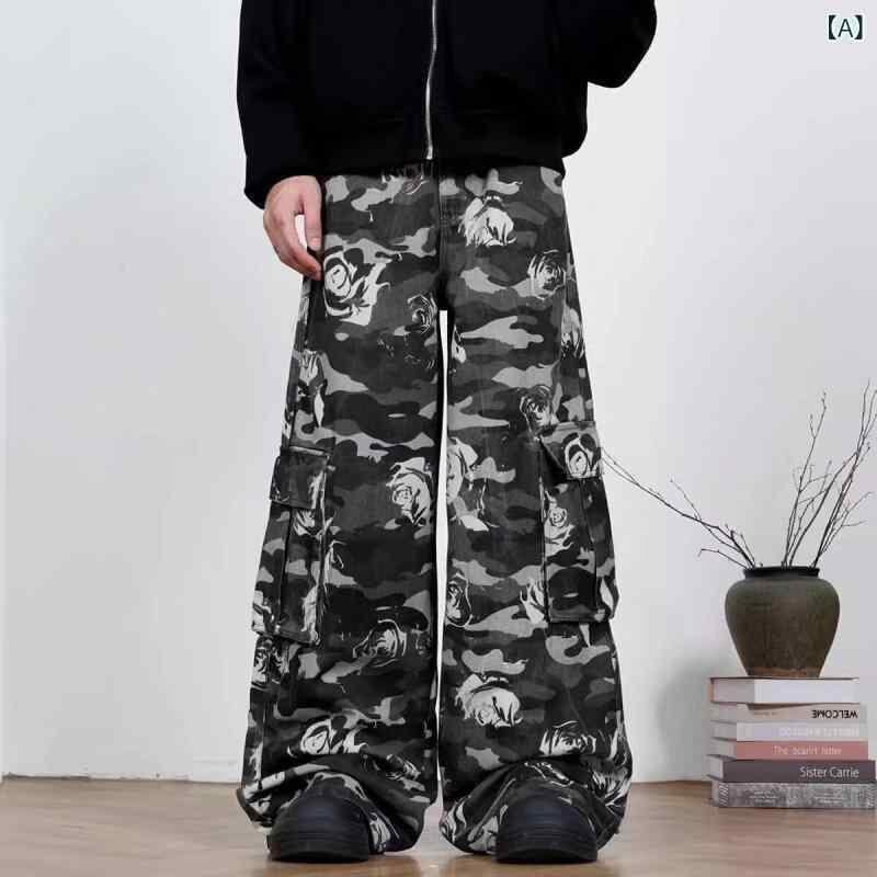 カーゴパンツ メンズ アメリカンレトロ マルチポケット 迷彩柄 ワイド ゆったり ストレート 綿 コットン 丈夫 ノンストレッチ イージーケア カジュアル 普段使い ロング丈 ボトムス