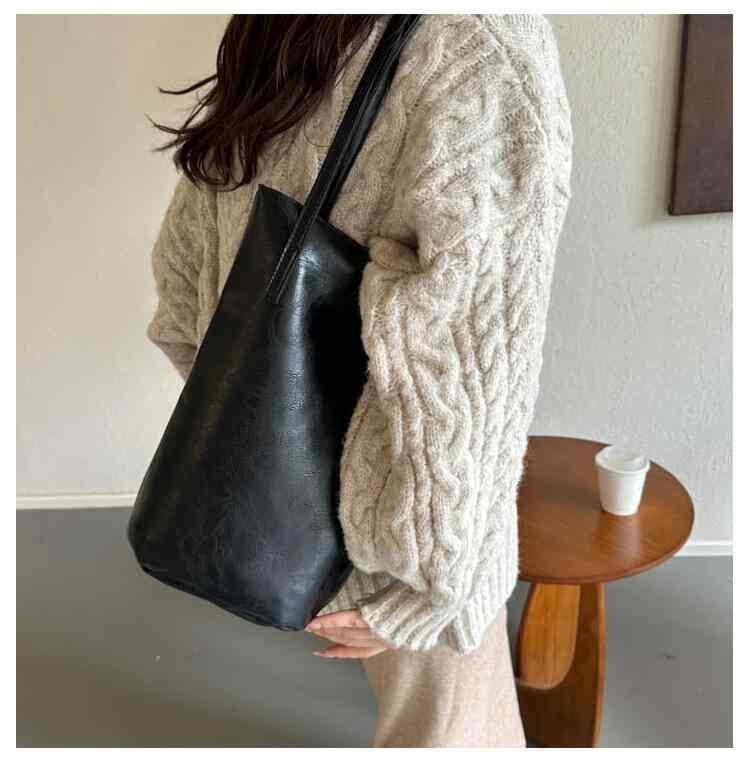 バッグ レディース 鞄 ワンショルダー 大容量 通勤 バケットバッグ バケツ型 個性的 リラックス カジュアル レトロ 上質 高見え PUレザー シンプルデザイン ファスナー開閉 携帯ポケット付き ソフトな質感