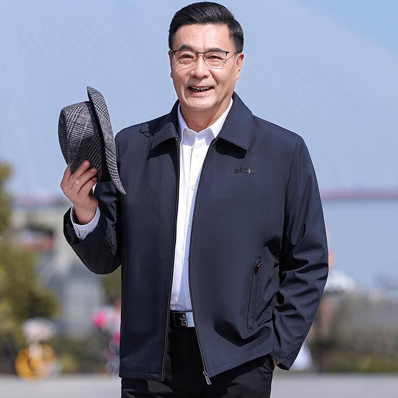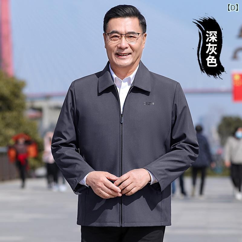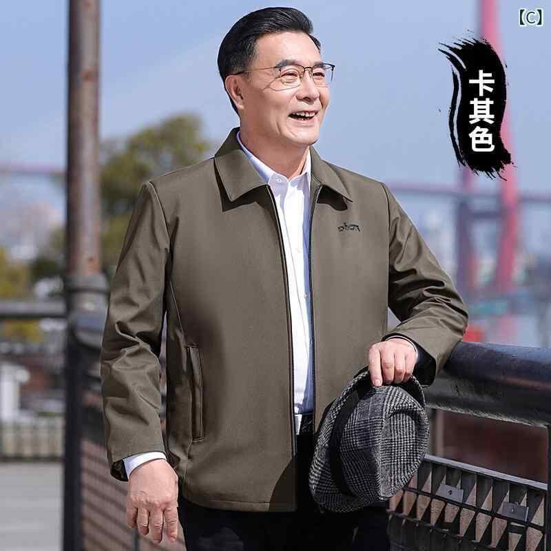 ジャケット メンズ 中高年 男性用 秋冬 アウター ブルゾン ジャンパー ビジネスカジュアル ワークスタイル 薄手 多ポケット 無地 ポリエステル 紺 黒 カーキ 襟付き