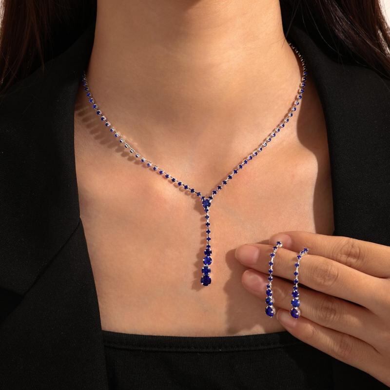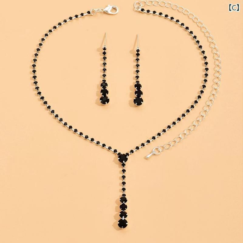 アクセサリー レディース ネックレス ピアス イヤリング 2点セット 銅製 ラインストーン ブライダル 花嫁 結婚式 フォーマル パーティー 二次会 発表会 上品 エレガント シルバー ゴールド