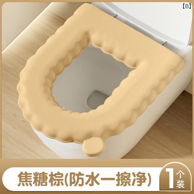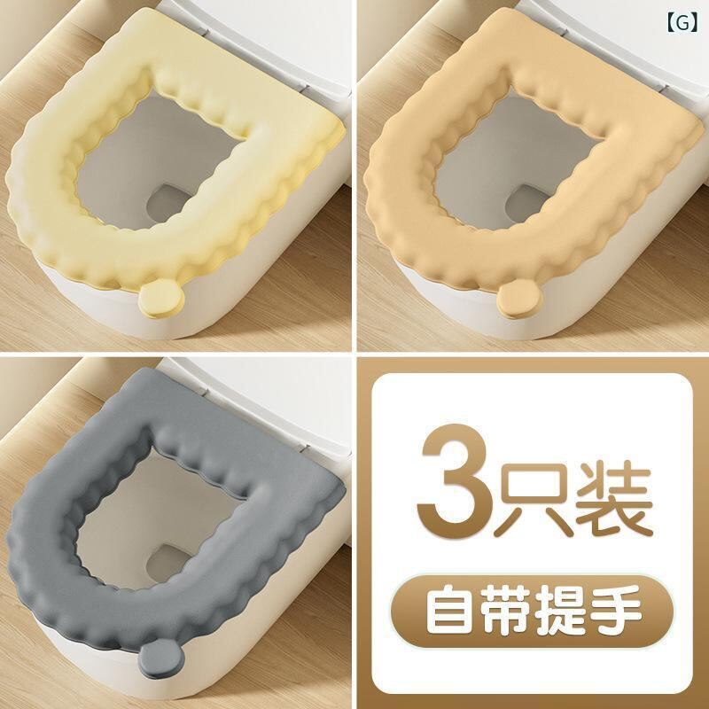 便座シート EVA素材 防水 防汚 貼り付け式 洗える 四季兼用 持ち手付き キャラクター柄 かわいい 高級感 トイレマット 便座クッション クリームイエロー コーヒーブラウン グレージュ