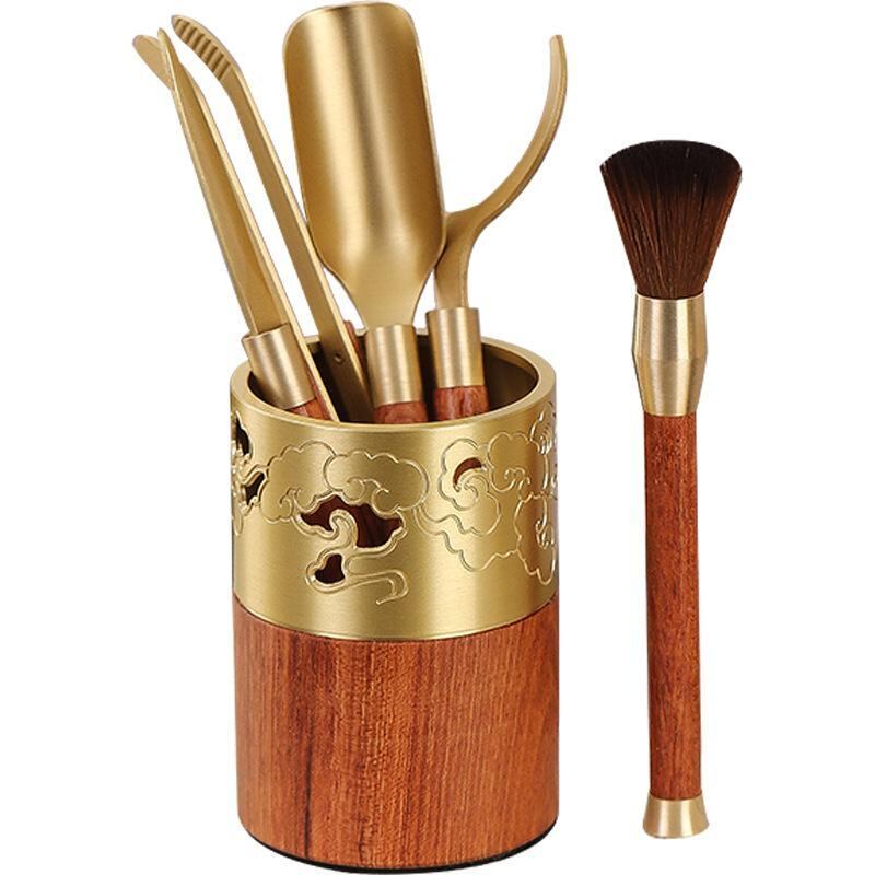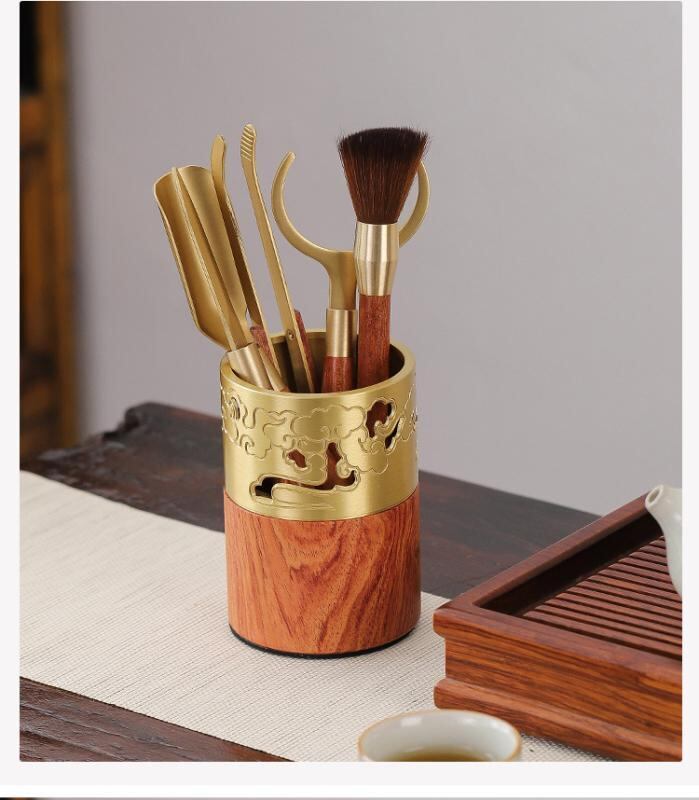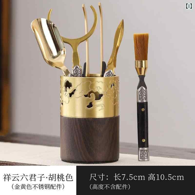 茶器 高級感 無垢材 黒檀 茶道 六君子 セット 銅 木製 祥雲 吉祥柄 功夫茶器 お茶道具 茶挟 筆筒 置物 飾り インテリア 普段使い 来客用 プレゼント 上品 モダンチャイニーズ