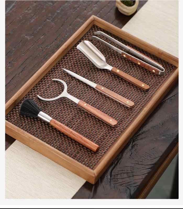 茶道具 高級感 無垢材 天然木 ステンレス 茶挟 茶匙 カップフォーク 養壺筆 茶刀 5点セット 中国茶器 普段使い 来客用 おしゃれ 和モダン プレゼント