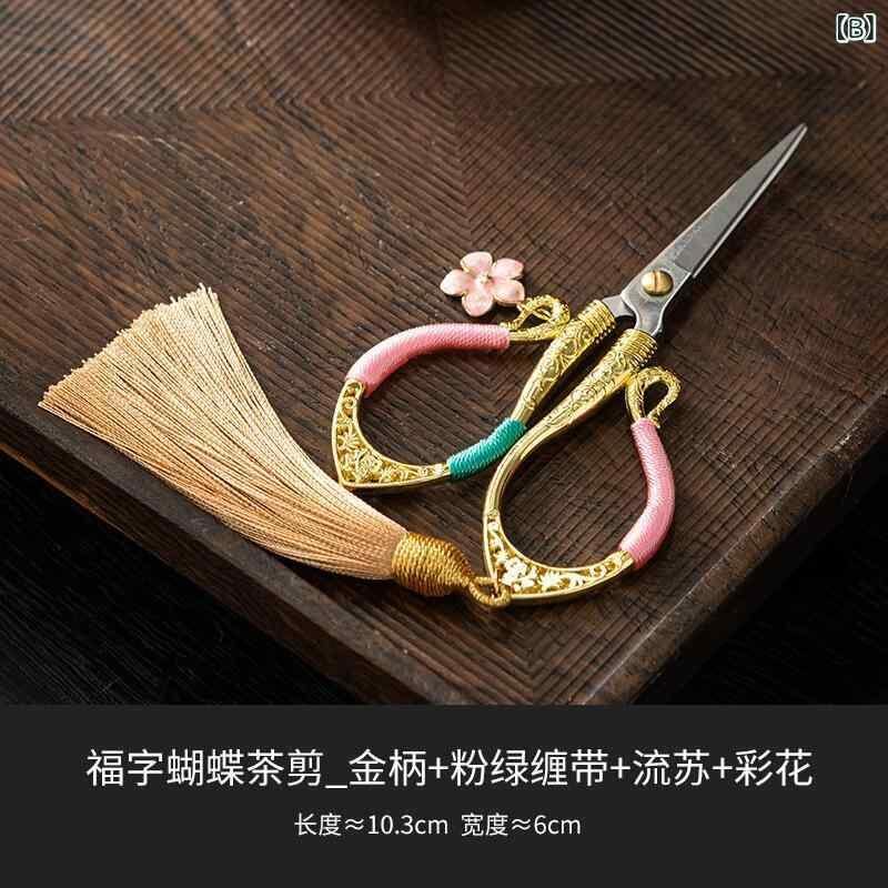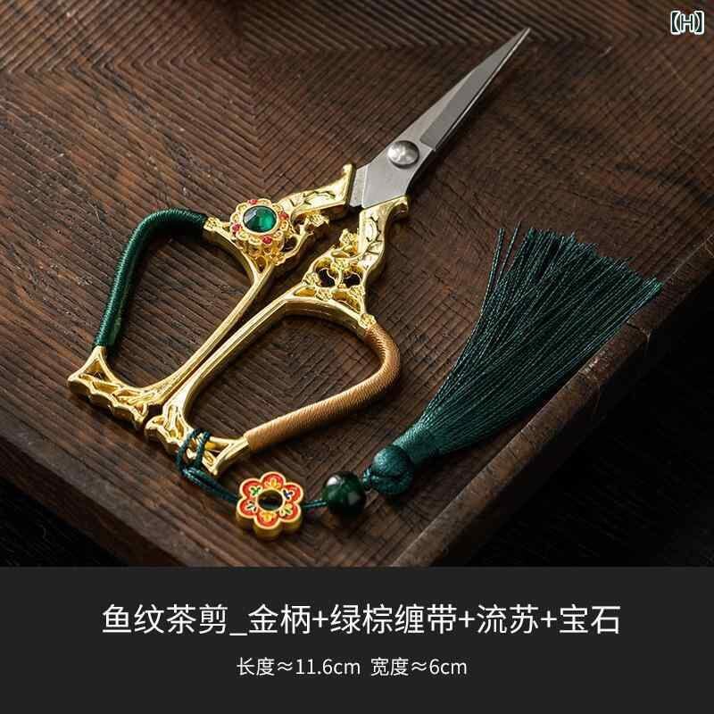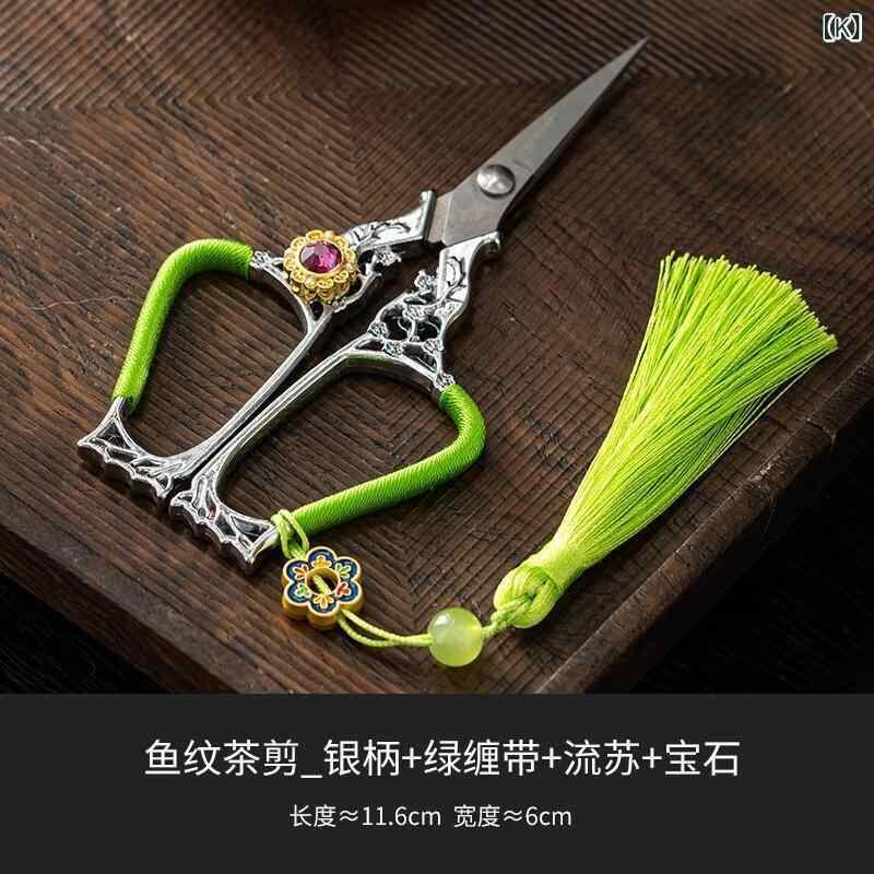 茶道小物 上品 エレガント タッセル 魚柄 フィッシュモチーフ 金属製 茶バサミ 家庭用 茶葉カット 紅茶 中国茶 ハーブティー 普段使い ハンドメイド ミニ 小型 レトロ アンティーク 東洋風