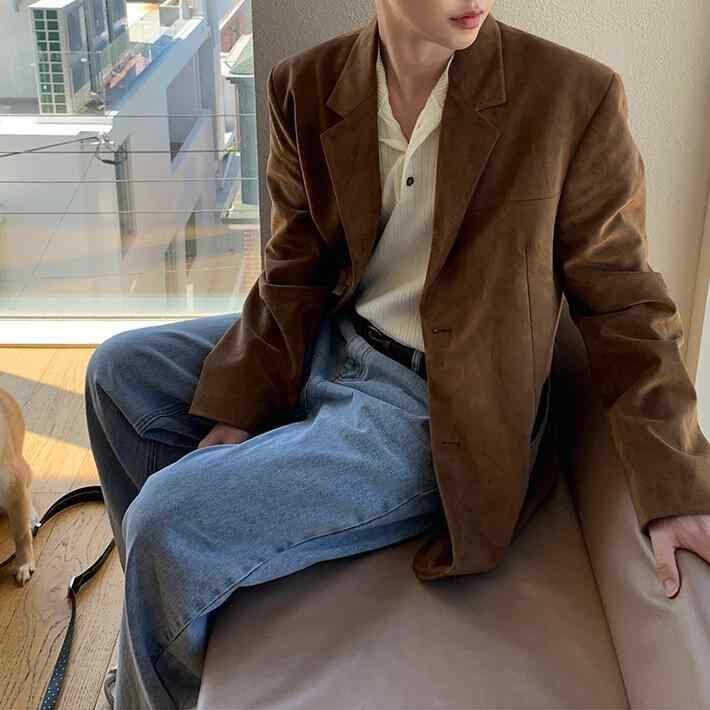 ジャケット メンズ 高級感 カジュアル ゆったり ブレザー テーラードカラー シングルブレスト 春夏 アウター 韓国ファッション ストリート 無地 長袖 耐摩耗性 ポリエステル混紡 ルーズフィット 普段使い お出かけ スタイリッシュ