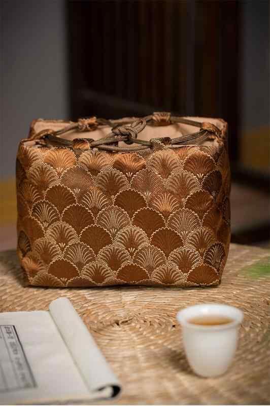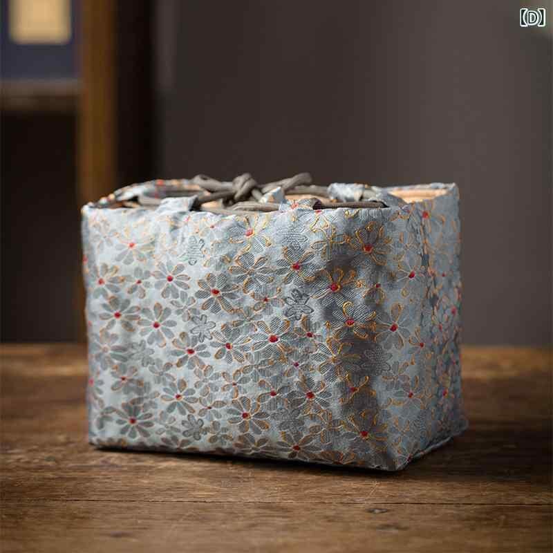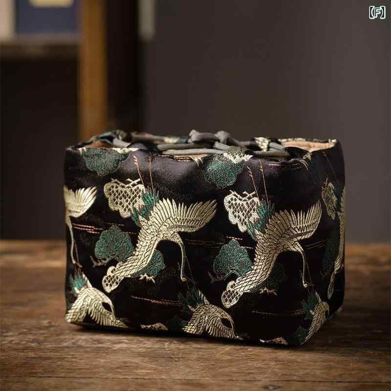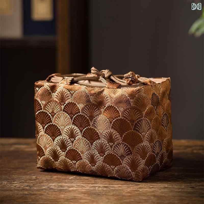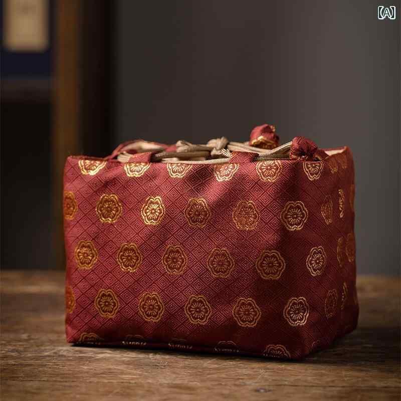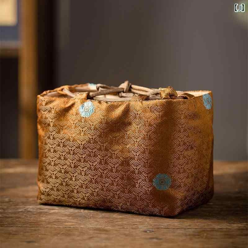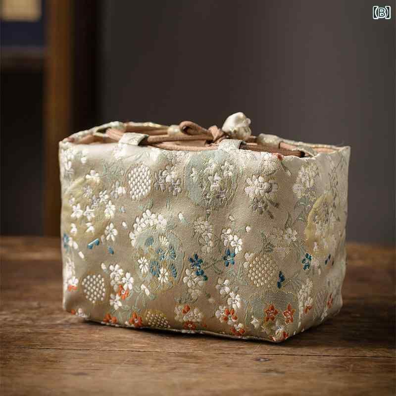 茶器収納ケース 中国風 レトロ クラシック 雲錦模様 布製 厚手 クッション 保護 茶道具 携帯用 ポータブル 一茶壺二杯用 旅行 トラベル アウトドア