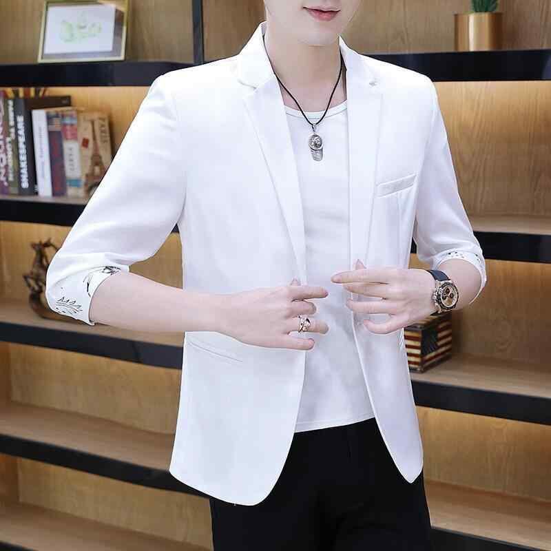 ジャケット メンズ 男性用 七分袖 薄手 スリムフィット 韓国風 テーラードカラー 一つボタン カジュアル オフィス 通勤 上着 ポリエステル ストレートシルエット ホワイト ブラック ブルー