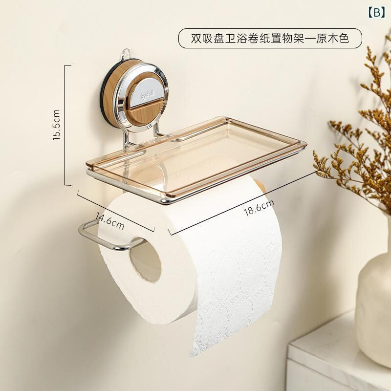 トイレ収納 吸盤式 穴開け不要 ウォールシェルフ トイレットペーパーホルダー ティッシュケース 多機能 洗面所 賃貸OK 小物収納 ウォールナット ナチュラルウッド シンプル おしゃれ 整理整頓