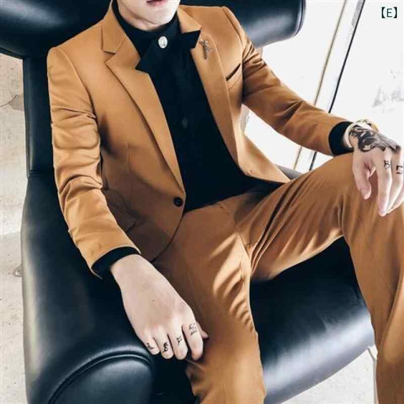 セットアップ メンズ 男性用 オフホワイト エクリュ ジャケット ブレザー スラックス パンツ 2点セット 韓国ファッション 韓流 カジュアル きれいめ ビジネス ビジカジ ポリエステル 通年