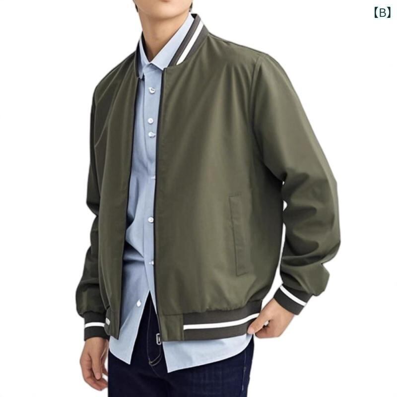 ジャケット メンズ スタンドカラー カジュアル 野球ブルゾン ジャンパー アウター 防水 防風 ポリエステル 春秋 普段使い レジャー お出かけ ブラック カーキ ネイビー