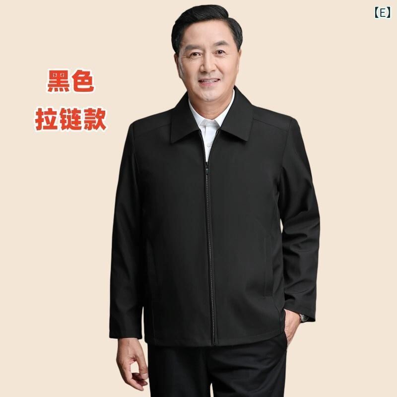 ジャケット メンズ 中高年 シニア 春秋 アウター ゆったり ルーズフィット カジュアル シンプル 襟付き マルチポケット 丈夫 耐久性 ポリエステル 無地 長袖 ネイビー ブラック カーキ