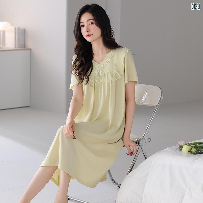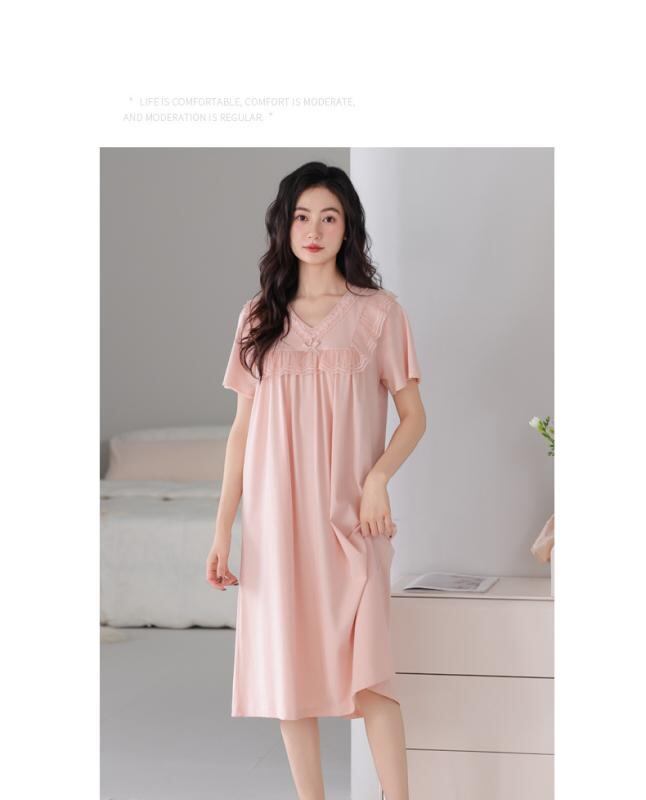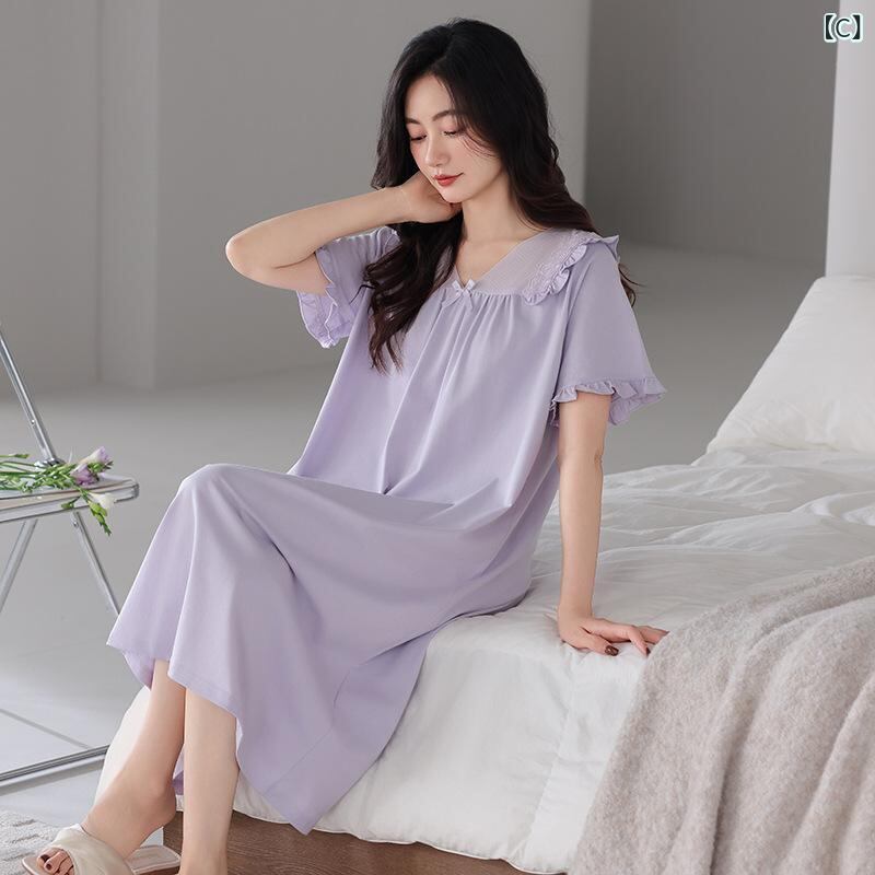 ワンピース レディース マタニティ 妊婦 ママ ナイトウェア ルームウェア パジャマ 部屋着 ワンマイルウェア カジュアル 半袖 薄手 綿 コットン Vネック 通気性 ストレッチ 涼しい 快適 ロング丈 春夏