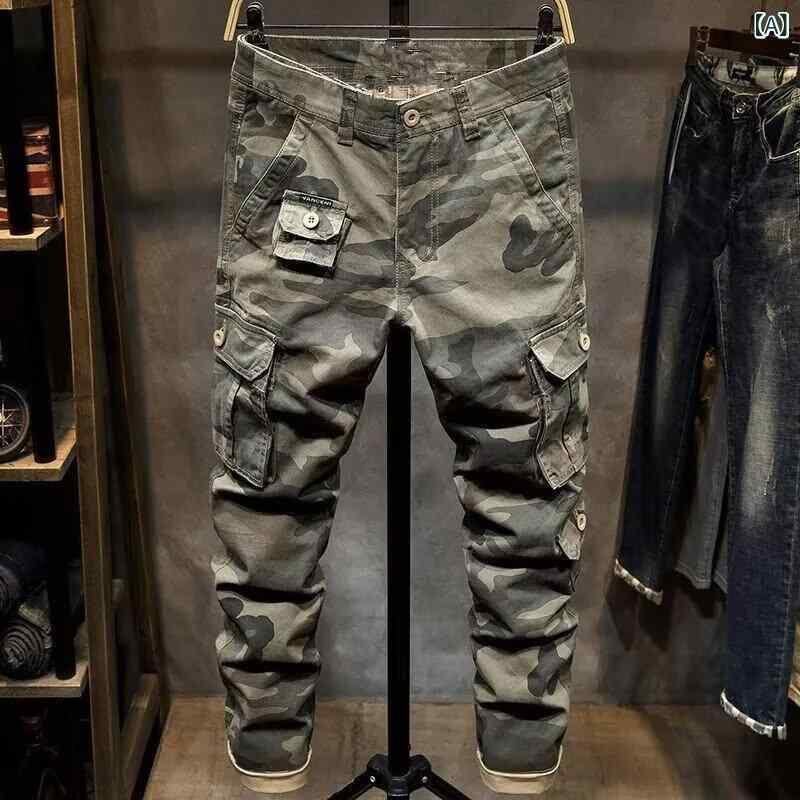 ["・カテゴリ: ジーンズ","・タイプ: ワークパンツ","・スタイル: ベーシックカジュアル","・フィット: ルーズ","・丈: フルレングス","・ウエスト: ミドルライズ","・フロント: ジッパーフライ","・厚さ: 普通","・シーズン: オールシーズン","・主素材: ポリエステル","・用途: デイリー","・デザイン: ステッチ","・裾: ストレート","・加工: ウォッシュ加工","・対象: 青少年、成人","・性別: メンズ","・カラー: 迷彩","・サイズ: 28, 29, 30, 31, 32, 33, 34, 35, 36, 38"]