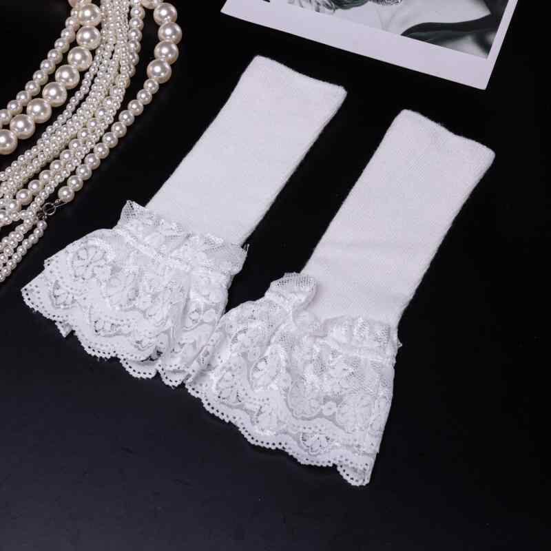 アームカバー レディース 秋冬 保温性 レース 付け袖 フェイクスリーブ 袖口 傷跡カバー タトゥー隠し おしゃれ 黒