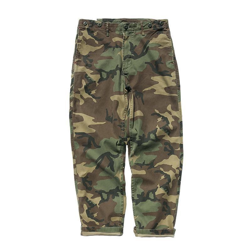 カーゴパンツ メンズ 春秋 迷彩柄 グリーン系 ストレートシルエット ゆったり リラックスフィット カジュアル 大人カジュアル 高級感 綿混素材 イージーケア デイリーユース