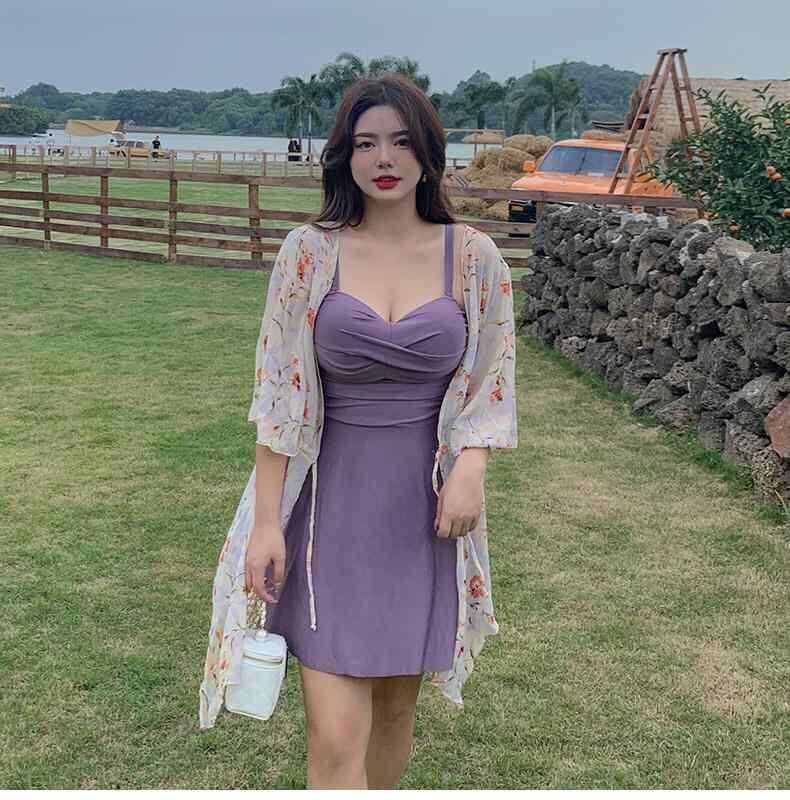 水着 レディース プラスサイズ セクシー 豊満バスト対応 ビキニ 3点セット セパレート スカートタイプ ハイウエスト 体型カバー お腹カバー 細見え ワイヤー入り パッド付き 温泉 プール リゾート パープル