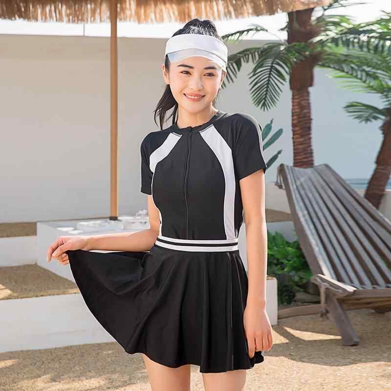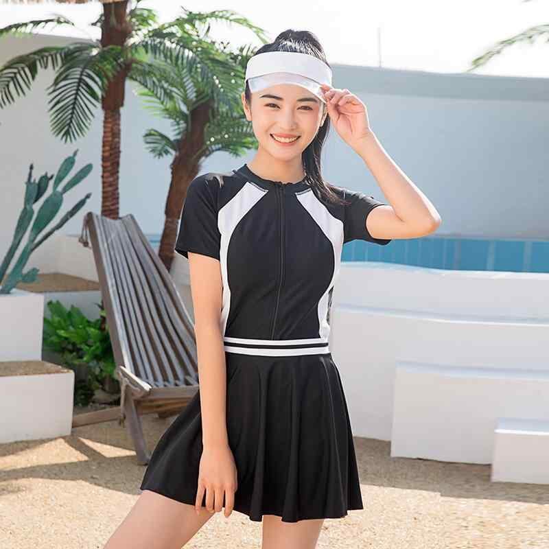 水着 キッズ ガールズ ジュニア 半袖 セパレート ショートパンツ スカート 韓国風 温泉 プール スイムウェア ナイロン ポリエステル ネイビー ブラック