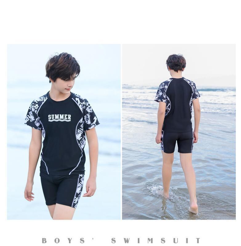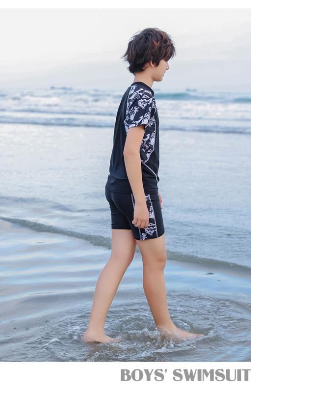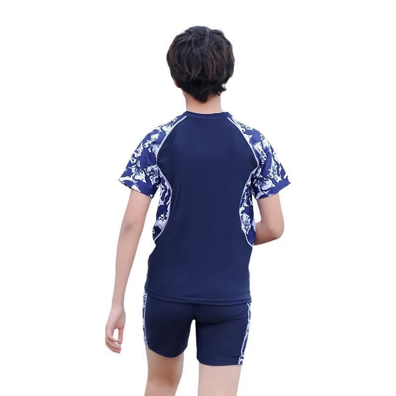 水着 男の子 キッズ ジュニア セパレート スイムウェア スイムパンツ 上下セット 大きいサイズ ゆったり ぽっちゃり 体型カバー スクール スイミング プール 小学生 中学生 ティーン ナイロン ポリエステル ブラック ブルー