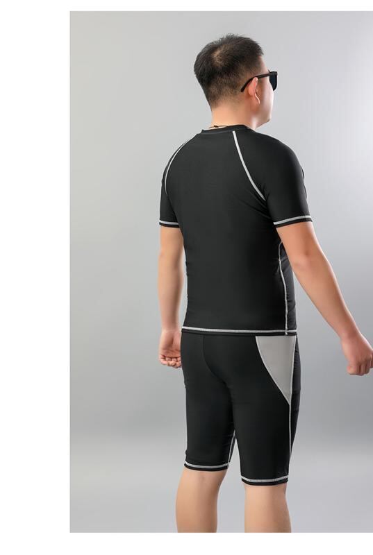 水着 スイムウェア メンズ 大人用 セパレート スイムパンツ 5分丈 上下セット 大きいサイズ UVカット トレーニング ビーチ 水泳 フィットネス マリンスポーツ ナイロン 速乾 ブラック