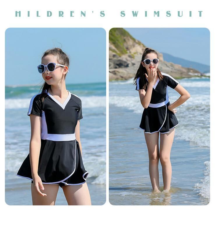 水着 女の子 女児 キッズ ジュニア 半袖 セパレート 2点セット スカートタイプ スポーツ スクール スイムウェア ナイロン ポリエステル プール 海 川遊び ウォータースポーツ ブラック 黒