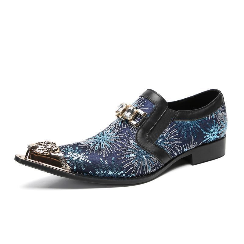 紳士靴 革靴 メンズ ビジネス フォーマル 結婚式 新郎 本革 牛革 レザー オックスフォードシューズ ポインテッドトゥ 手描き スター柄 シークレットヒール 通気性 ブルー