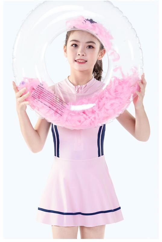 スイムウェア キッズ ガールズ ジュニア ワンピース スカート一体型 速乾性 胸パッド付き ナイロン ポリエステル ピンク ブラック プール 海水浴 温泉 水泳 春夏