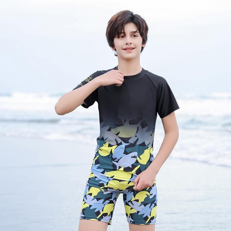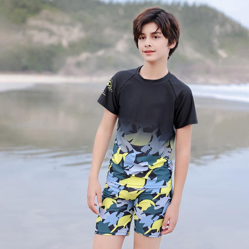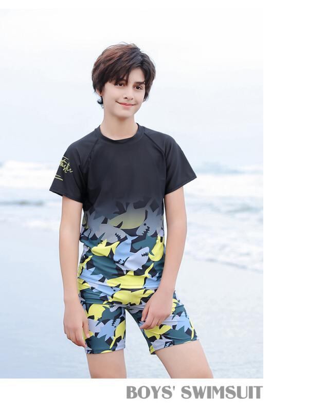 水着 キッズ 男の子 セパレート スイムウェア UVカット 日焼け防止 小中学生 ジュニア ティーン 大きいサイズ スイムパンツ プール 海水浴 水泳 ナイロン ポリエステル イエロー ブラック