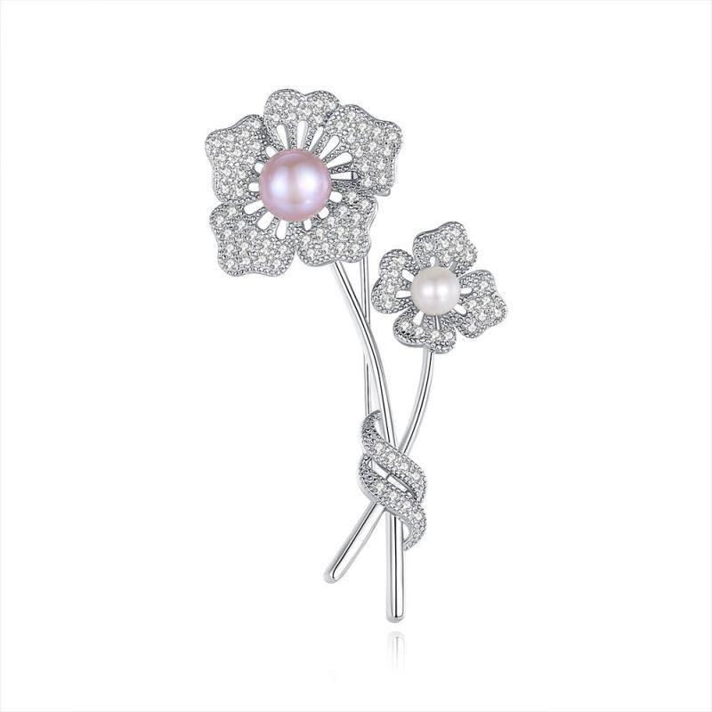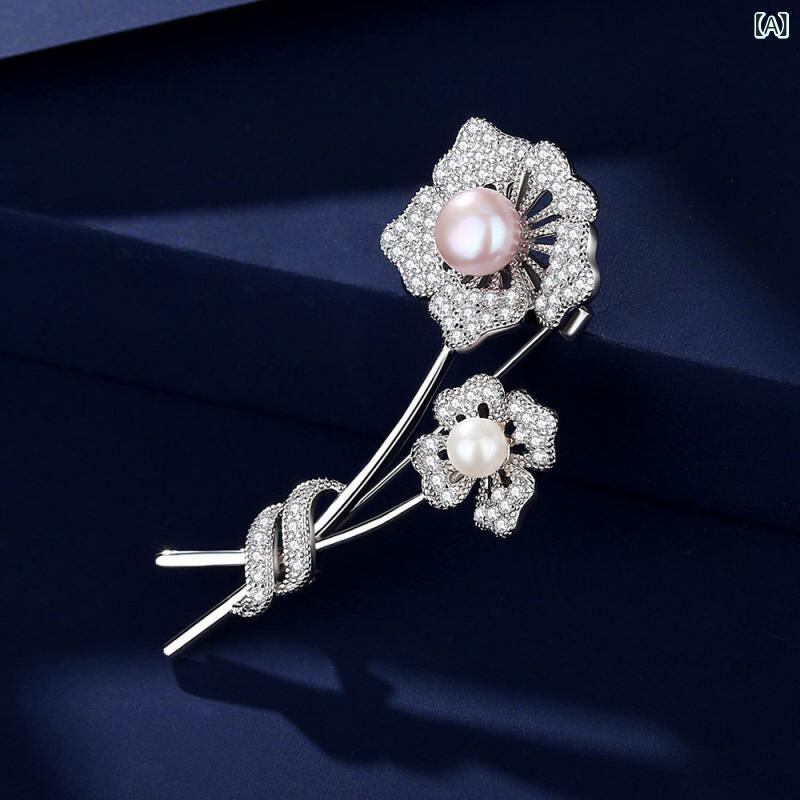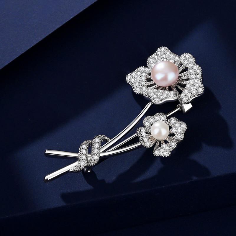 ブローチ パール レディース セレモニー コンサート 結婚式 贈り物 おしゃれ 胸飾り 高級感 シルバー 花 女性用 かわいい 胸花 百合 服飾雑貨