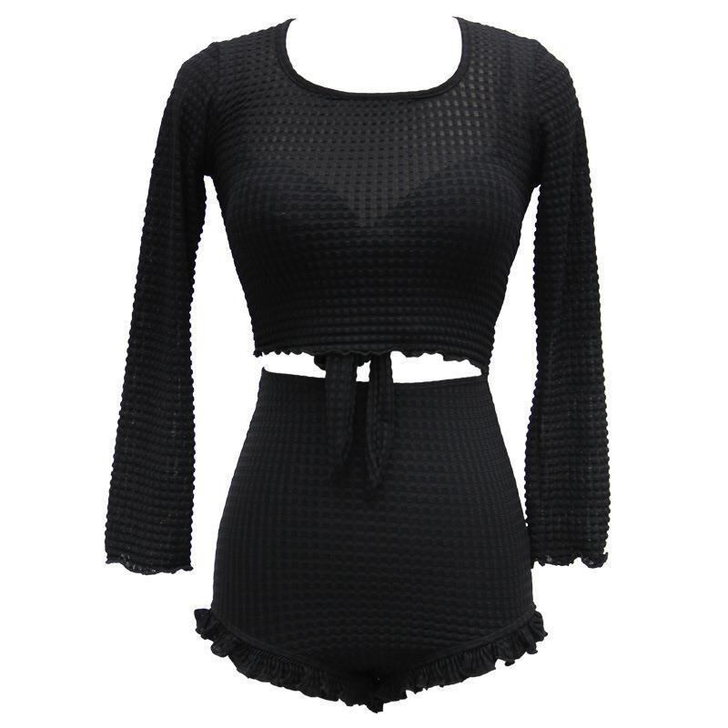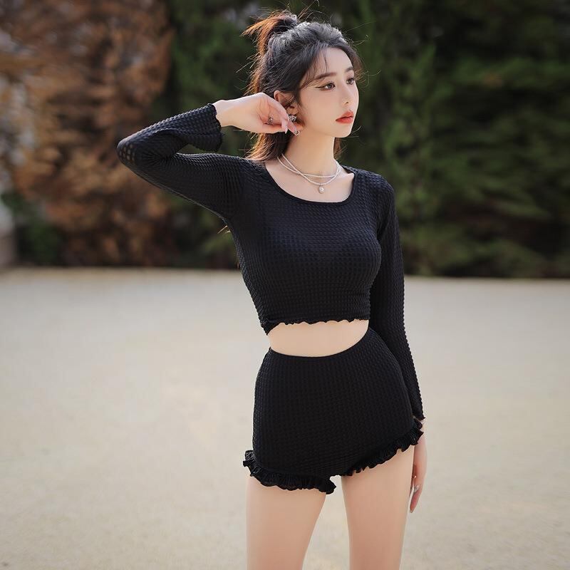 水着 レディース セパレート ビキニ 3点セット ワイヤー入り プッシュアップ ハイウエスト 体型カバー 露出控えめ セクシー ナイロン スパンデックス プール ビーチ 温泉 リゾート フィットネス ブラック ホワイト