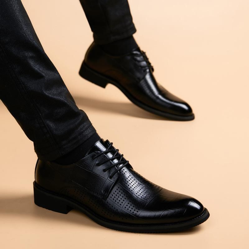 紳士靴 革靴 メンズ シークレットシューズ 夏用 パンチング 本革 通気性 蒸れにくい ソフトソール クッション性 軽量 ビジネス カジュアル オフィス 普段使い ブラック