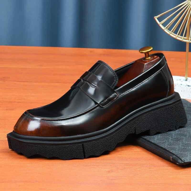 紳士靴 ローファー メンズ 厚底 スリッポン 本革 牛革 ビジネス カジュアルシューズ 滑り止め シークレットヒール 脚長効果 通気性 衝撃吸収 太ヒール 低ヒール ゴム底 オフィス 通勤