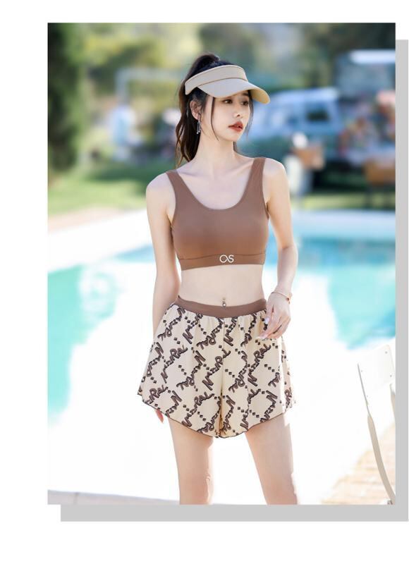 水着 レディース セパレート 3点セット 体型カバー 露出控えめ 韓国風 温泉 リゾート プール マリンスポーツ ビキニ スタイルアップ スカート付き 胸パッド ノンワイヤー 夏 ナイロン ポリエステル ブラウン系 グリーン