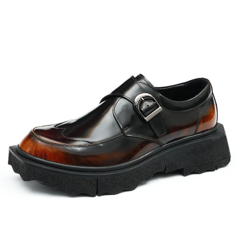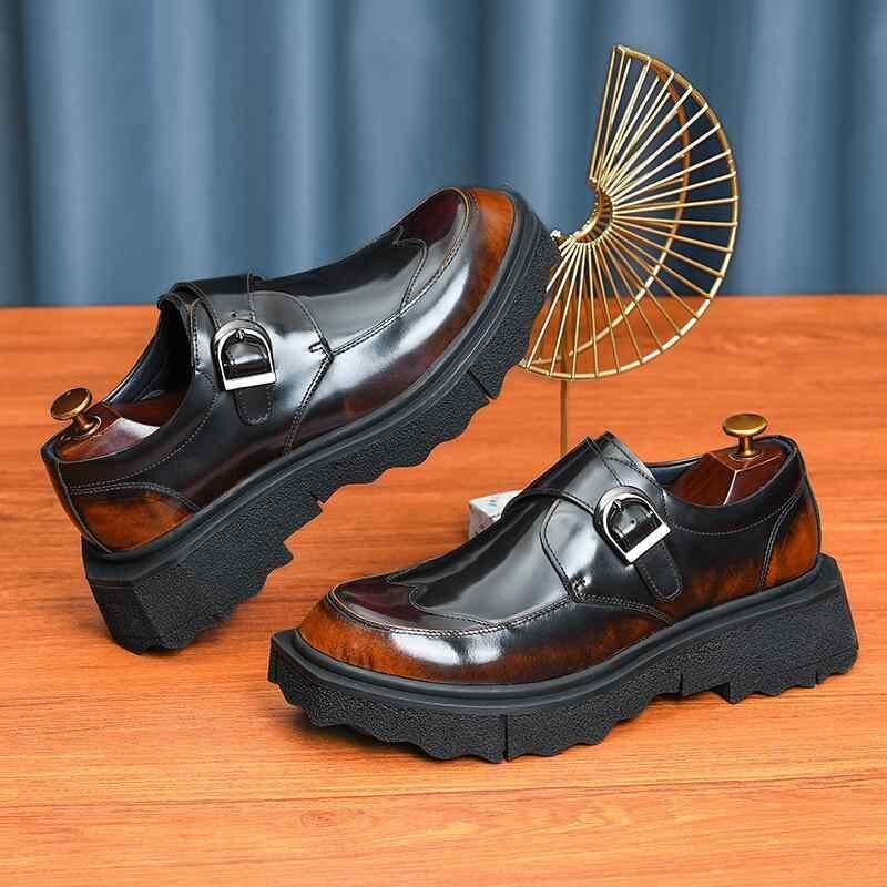 紳士靴 メンズ モンクストラップシューズ 本革 厚底 光沢 ビジネス カジュアル フォーマル 英国風