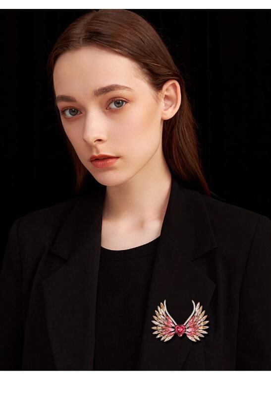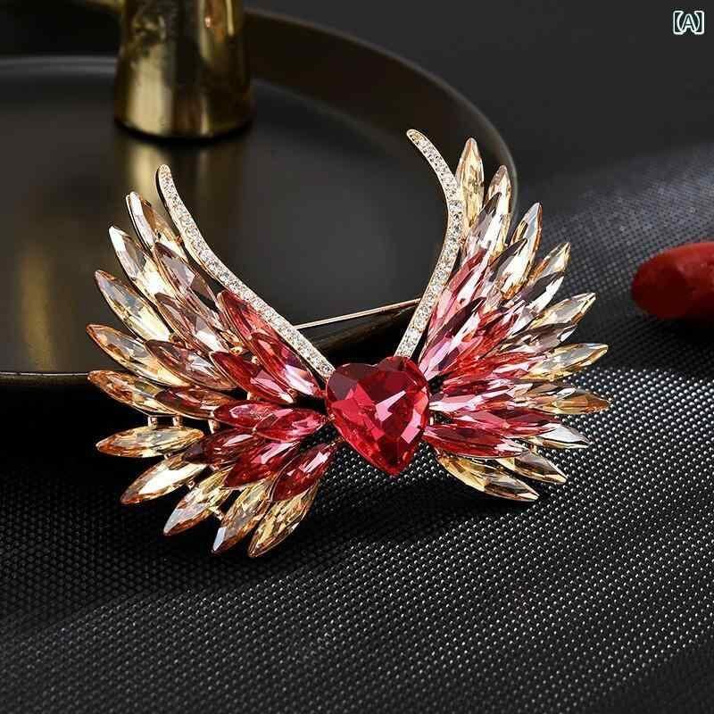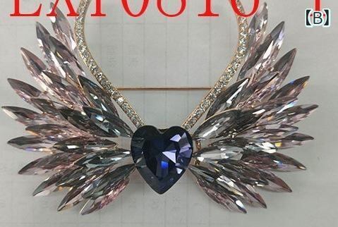 ブローチ レディース ピンク パープル グラデーション クリスタル ハート 天使の羽根 銅製 ラインストーン コート スーツ ファッション アクセサリー アニマルモチーフ