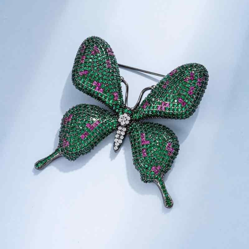 ブローチ 女性用 蝶 バタフライ 高級感 精巧 銅製 電気メッキ加工 グリーン 動物モチーフ コート ドレス フォーマル パーティー 入学式 卒業式 結婚式 春夏 上品 エレガント ゴージャス 煌めき