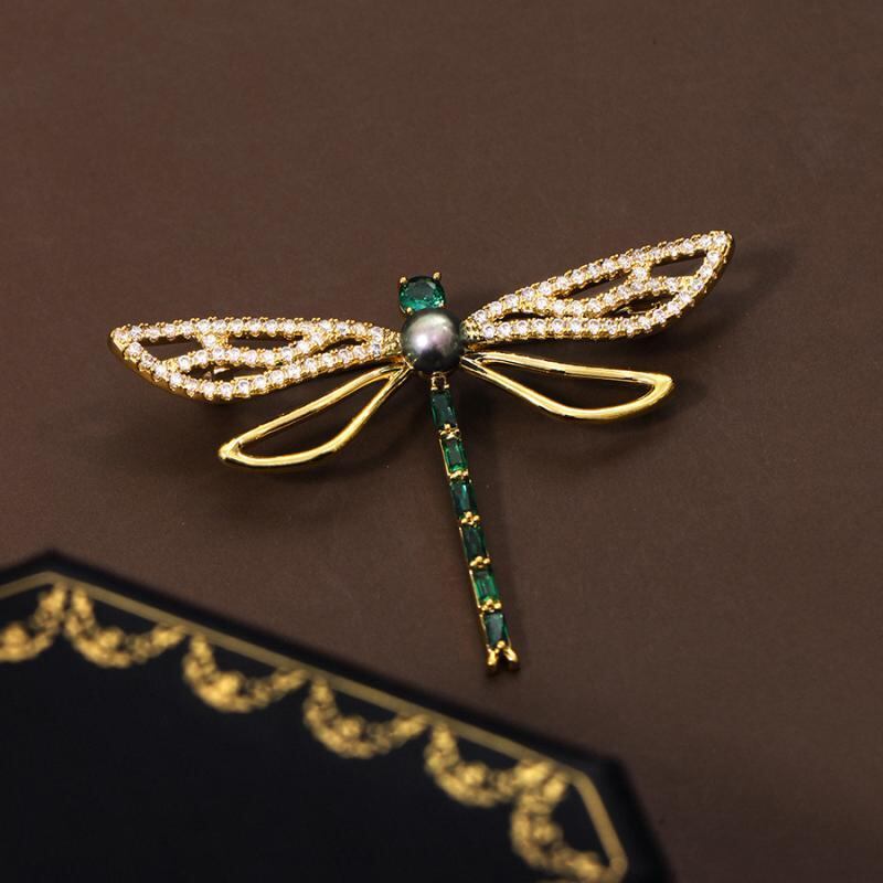 ブローチ トンボモチーフ 銅製 ゴールドカラー 豪華 エレガント 上品 精巧 存在感 スーツ ジャケット ビジネス フォーマル 結婚式 パーティー ファッション小物 胸元飾り