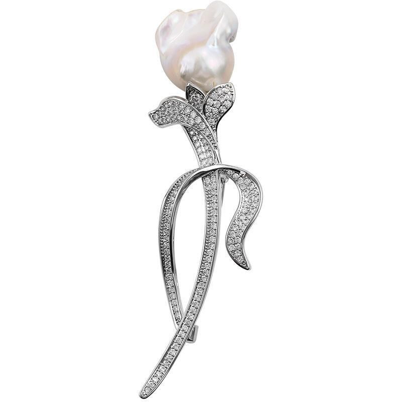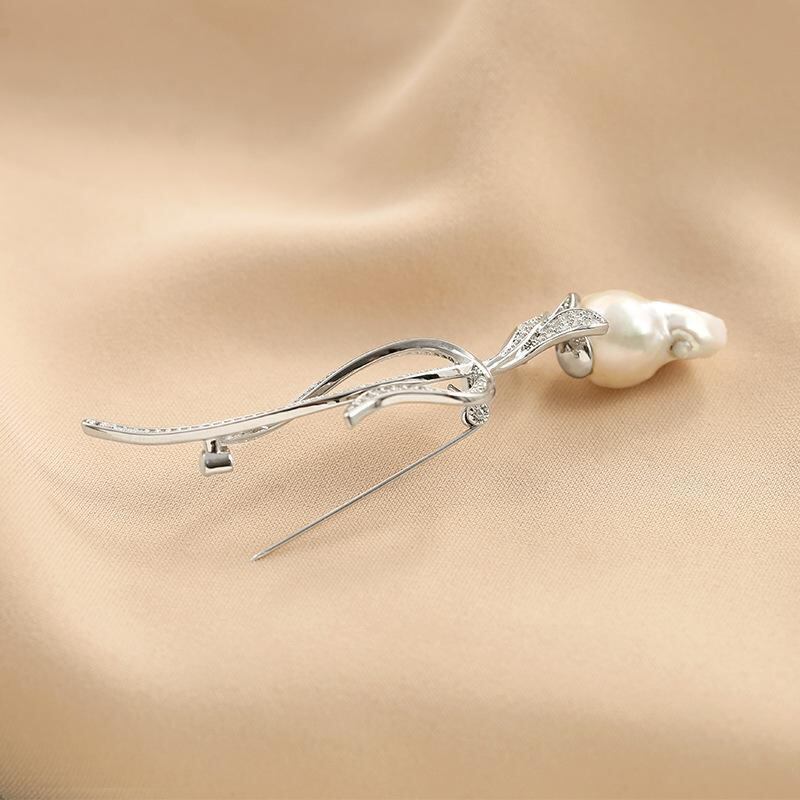 ブローチ レディース 変形 バロックパール チューリップモチーフ 秋冬 個性的 レトロスタイル 露出防止ピン 多機能 合金製 シルバーカラー おしゃれ