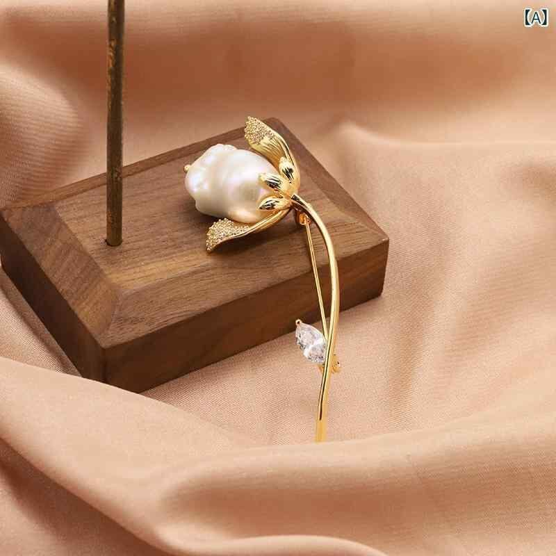 ブローチ パール レディース セレモニー コンサート 結婚式 贈り物 おしゃれ 胸飾り 高級感 バロック アクセサリー ローズ 花 飾り 胸花 真鍮